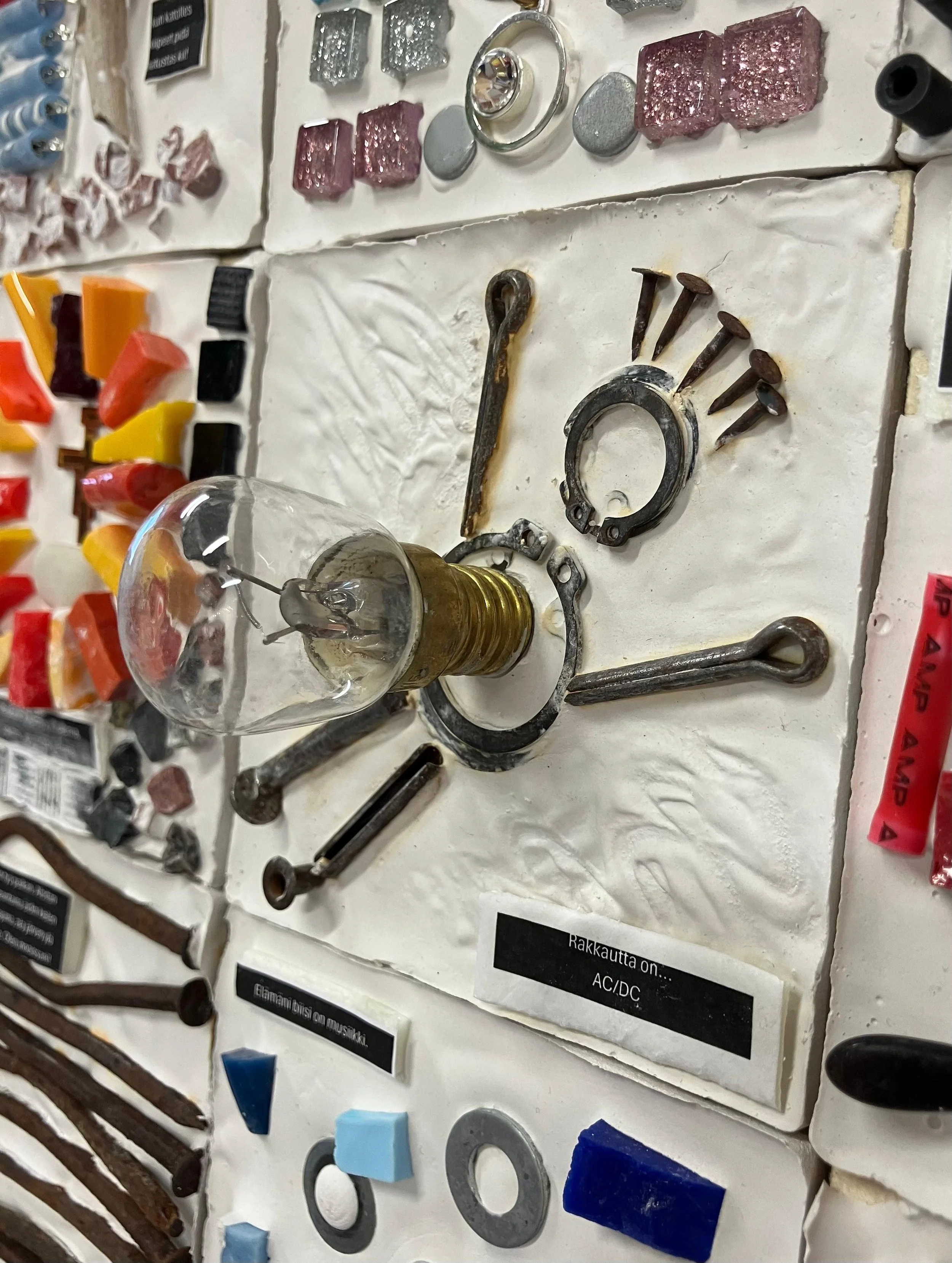 Pajapäivän aikana (3-4h) jokainen osallistuja valmistaa yhteisteokseen yhden osan/palan. Materiaaleina käytetään mm. kierrätysmateriaaleja. Voitte halutessanne ottaa mukaan myös yrityksen omaa, pienikokoista ”jätettä”. On koettu hyväksi mahdollisuus, jossa osallistuja voi tuoda mukanaan itselleen tärkeän pienen esineen, jonka hän liittää omaan teokseensa.